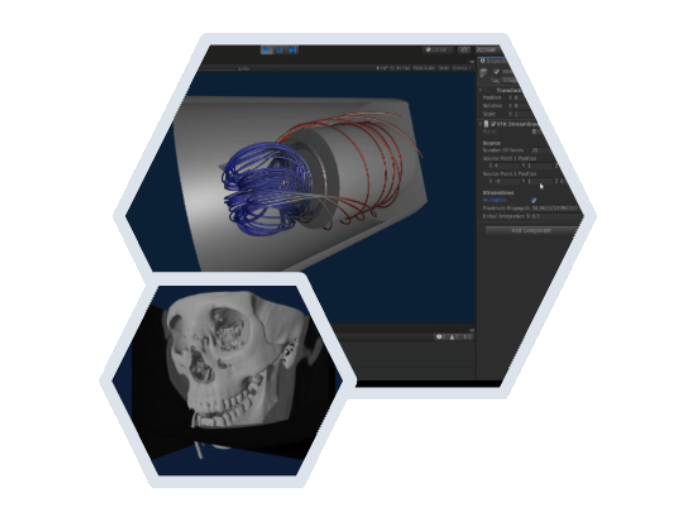 The VTKUnity-ActiViz native plugin gives you access to the full VTK API from Unity’s scripts to render VTK actors mixed with Unity Game Objects. It also provides scripts to synchronize lights and cameras, as well as examples that demonstrate best practices to set up a VTK scene.